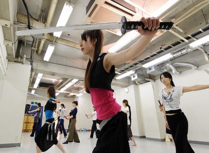 日本白领女性学习武士刀减压