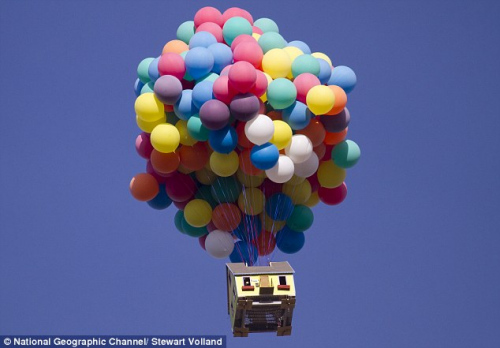 海外メディアの報道によると、米「ナショナル・ジオグラフィック」の従業員はこのほど、ディズニーアニメ映画「カールじいさんの空飛ぶ家(原題:Up)」の夢のシーンを見事に再現させ、カリフォルニア州の砂漠で300個の風船を使って家を飛ばした。 [1] [2] 下へ