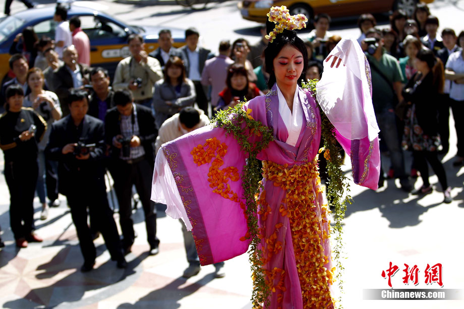 「インセプション」をテーマとするウエディングドレスの新作発表会が4月18日、北京市の莱太花卉市場で行われた。 紫のコチョウラン、ピンクのバラの花など鮮やかな花は、ウエディングドレスの美しい飾りになっている。本物の花で飾られたウエディングドレスの最高価格は1万1999元に上るという。 「中国網日本語版(チャイナネット)」 [1] [2] [3] [4] 下へ