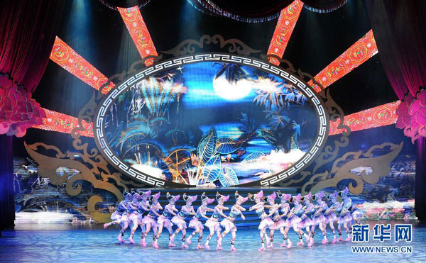 舞踏『花香裙雨』 16日夜 中国・フフホト市少数民族文化観光芸術祭は16日の夜、開幕しました。開幕式のイベントで、中国の中央民族歌舞団、内蒙古民族歌舞劇院などの芸術団体が素晴らしい歌と舞踏を披露しました。(オウギ、山下)「中国国際放送局」