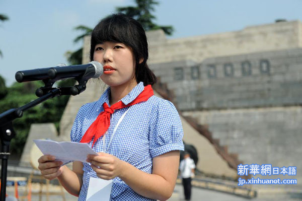 中国人民抗日戦争・世界反ファシズム戦争勝利66周年の3日、南京大虐殺記念館で集会が開かれ、地元小学校の教師・児童、抗日戦争の旧兵士、大虐殺の生存者、市民代表が出席した。