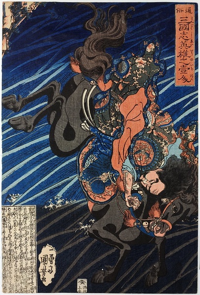 日本江戸時代末期を代表する浮世絵師の一人である歌川国芳(1798年1月1日―1861年4月14日)は、画想の豊かさ、斬新なデザイン力、奇想天外なアイデア、確実なデッサン力を持ち、浮世絵の枠にとどまらない広範な魅力を持つ作品を多数生み出した絵師である。作品の中に、「通俗三国志英雄之壹人」は、三国志の英雄達を一人ずつ描いた武者絵シリーズである。