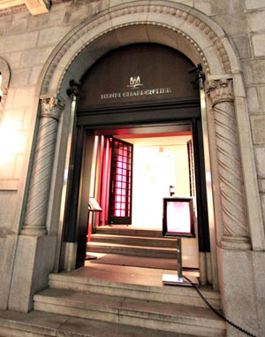 アンリ・シャルパンティエ銀座本店は東京の最も高価な場所にあり、華麗なバロック様式の外観、ピンクパープル系の装飾、立派なドアがパリの雰囲気を感じさせる。