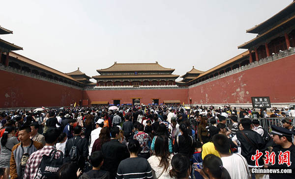 メーデー連休初日の29日、観光客で賑わう故宮。午前11時20分時点で、すでに6万枚以上の入場券が売れた。 「人民網日本語版」