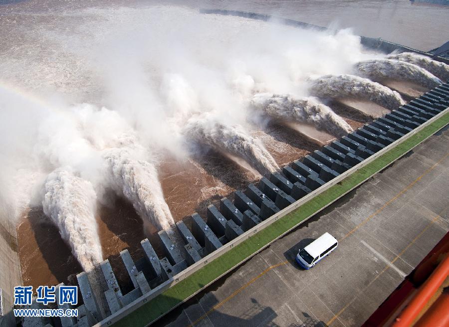 7月24日、三峡ダムは7つの放流穴が開放され、放水を実施する。情報によると、長江上流は今年最大の放水ピークになり、三峡ダムは25日未明には毎秒70000立方メートルのダム建設以来最大の放水を迎えた。