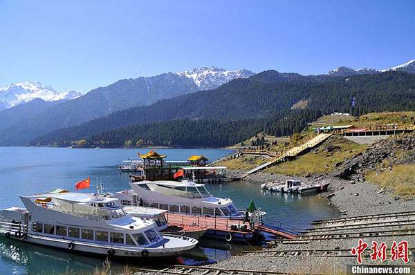 新疆維吾爾(ウイグル)自治区の天山天池は先ごろ降雪にみまわれた。気温の低下にともない、多くの観光客はダウンジャケットをまとい、雪の後の輝く天池や白い雪で覆われた高山の美しい姿を楽しんだ。天池は世界的に有名な高山湖で、新疆の阜康市南東40キロ余りの位置にある。古くは「瑶池」と呼ばれ、天山博格達峰北側の海抜1910メートルに位置し、湖の最深部は105メートルの深さがある。水の豊かな時期には面積4.9平方キロメートルに達し、高山や森林、川、滝、寺などに囲まれている。写真は人で賑わう風景区。