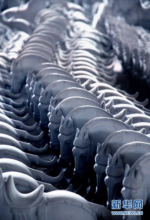 倉庫の中で、焼付けを待つ唐三彩(10月29日撮影)。
