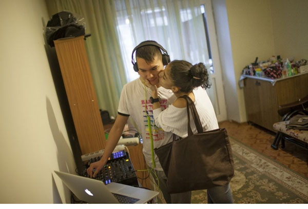ロシア動物園 双子のホッキョクグマが飼育員に甘える