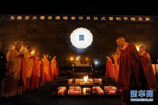 南京大虐殺の被害者30万人をキャンドルで追悼