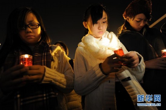 南京大虐殺の被害者30万人をキャンドルで追悼