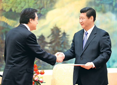 習近平中共中央総書記は23日、韓国の朴槿恵次期大統領の特使として訪中した金武星氏と人民大会堂で会見した。