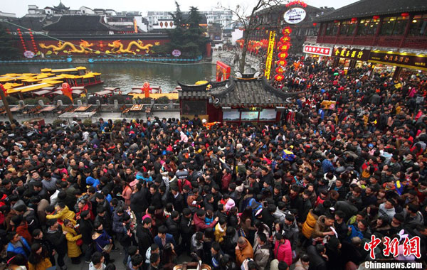 元宵節の南京の夫子廟 数十万人の観光客でごったかえす