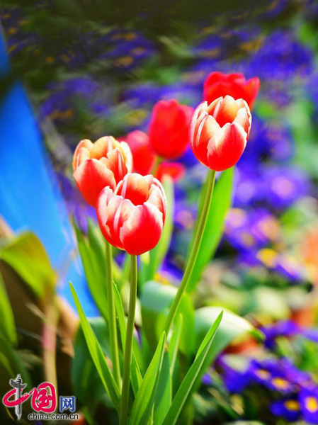 福州 新春を祝うチューリップ