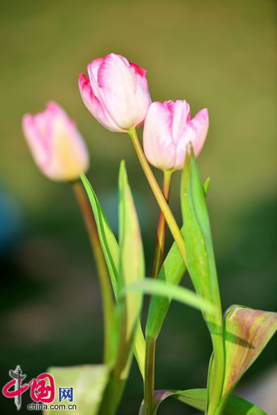 福州 新春を祝うチューリップ