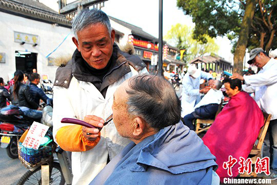 江蘇省蘇州市、真剣な眼差しで理髪中
