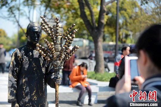 揚州 生きた「銅の彫像」のパフォーマンスアート