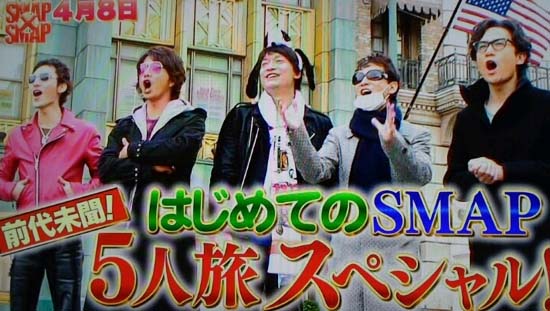 据日本通网站消息,人气综艺节目《SMAPxSMAP》日前播出了“SMAP首次5人旅行”特别篇,收视率达到20.0%。天团SMAP的队长中居正广感慨大哭的镜头令人印象深刻。
