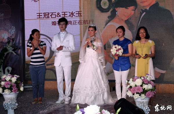 26日の夜、中国女子カーリングチームのキャプテンの王氷玉さんは、故郷のハルビンで結婚式を行った。新郎の王冠石さんは結婚式会場で新婦に特大のカーリングをプレゼントした。