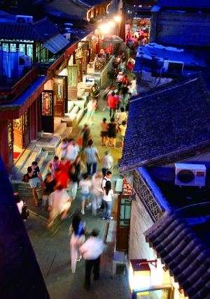 この「空中胡同」は2階構造で、明朝時代の雰囲気が色濃い店舗が入居し、渡り廊下で繋がるように設計され、「空中胡同」のコンセプトが全面的に打ち出される。この「空中胡同」が完成すると、地上を通り過ぎるだけだった人々がここに集まってくると同時に、風情ある什刹海の景色を観光客に存分に楽しんでもらえるという効果も期待できる。