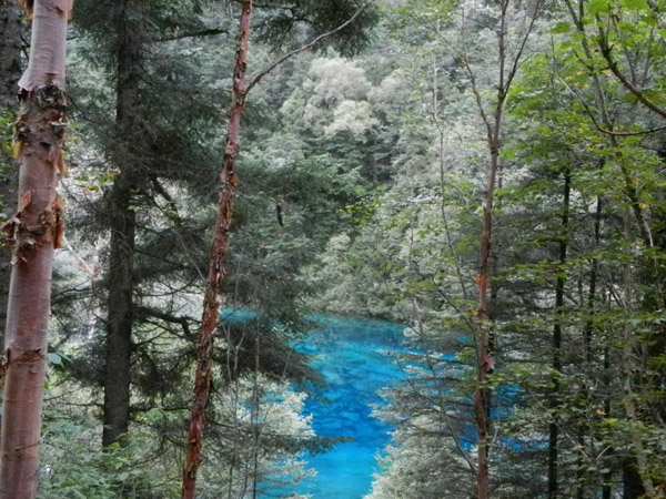 写真4:緑豊かなみずみずしい自然の中に驚くほど青い湖が点在する
