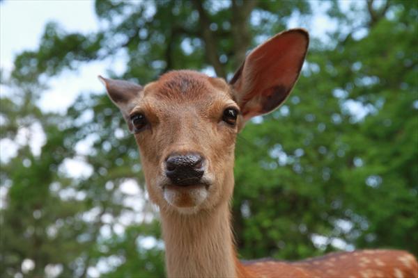 奈良公園は奈良県奈良市市街地の東部にある都市公園で、鹿と遊べることで有名である。東西4キロ、南北2キロの広大な園内でびのびと生活している鹿たちは大人しくて、人懐こい。春日大社の創建にあたって、神が白い鹿の背に乗って奈良にやってきたという伝説があり、鹿たちは古くから手厚く保護され、国の天然記念物にも指定されている。
