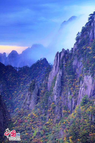 中国の山岳観光の最初にくぐる門 黄山の雄大な風景