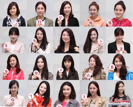 2013年度の「ミスコリア」コンテストが始まり、参加選手の容貌が「皆そっくりだ」とネットで話題を集めている。同コンテストの参加選手の事前トレーニングの際の顔写真がこのほど公開されたが、「そっくり」に見えるのは韓国の高いメイク技術によるものだ。素顔の選手たちがメイクアップアーチストの手にかかると別人のように変身している。人民網が伝えた。
