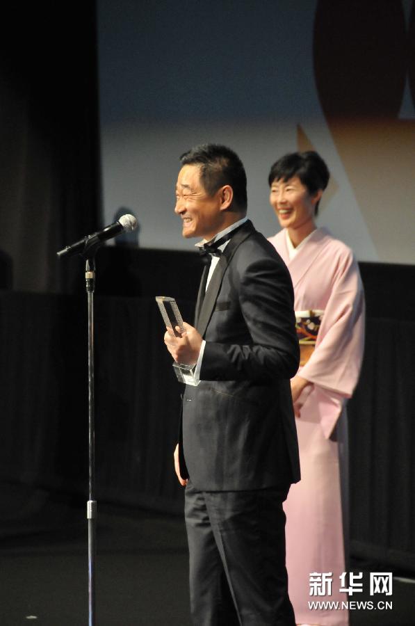「オルドス警察日記」は、内モンゴル自治区の公安局であった実話を映像化したもの。実在の公安局長を演じたワン・ジンチュンは、より本人に近付くため、現地の方言を学び、体重を10キロ以上増やして「完全に自分を捨てた」と語る。受賞にあたっては、ニン・イン(寧瀛)監督はじめ、近しい人々に感謝のメッセージを発表。さらに映画祭についても感謝の言葉を述べ、「僕らに翼を与えてくれた。映画の世界でさらに羽ばたいてゆくパワーをくれた」と語った。そして最後には、「もちろん妻にも感謝している。そう言っておかないと、帰国したらちょっとややこしいことになる」とジョークも忘れなかった。