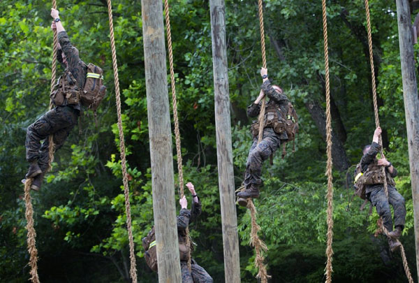 「社会」米海軍陸戦隊の女性兵士の訓練姿