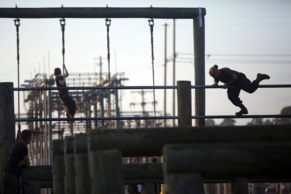 「社会」米海軍陸戦隊の女性兵士の訓練姿