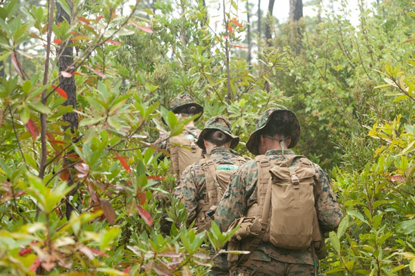 「社会」米海軍陸戦隊の女性兵士の訓練姿