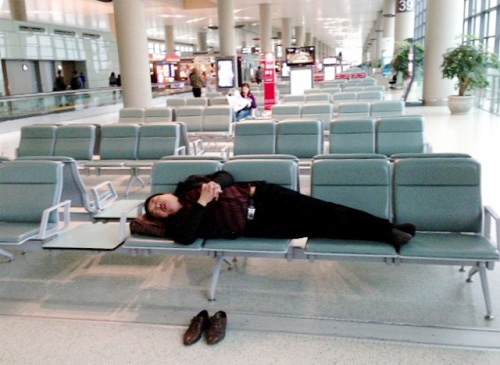 在日本某机场睡觉的中国人。(日本《中文导报》)