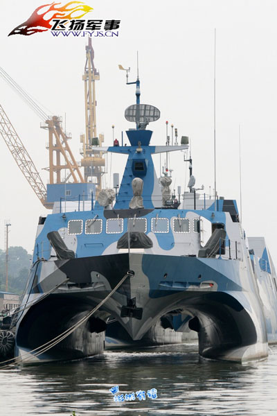 南海艦隊022型ミサイル艦、ミサイルを吊り上げる