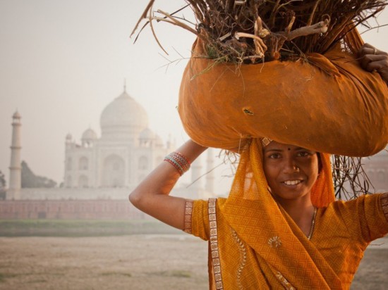 泰姬陵在印度泰姬陵的附近收集木柴。