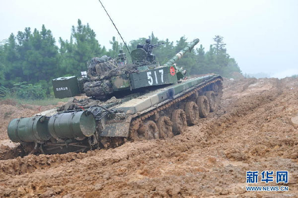 解放軍99式戦車、泥沼を突進