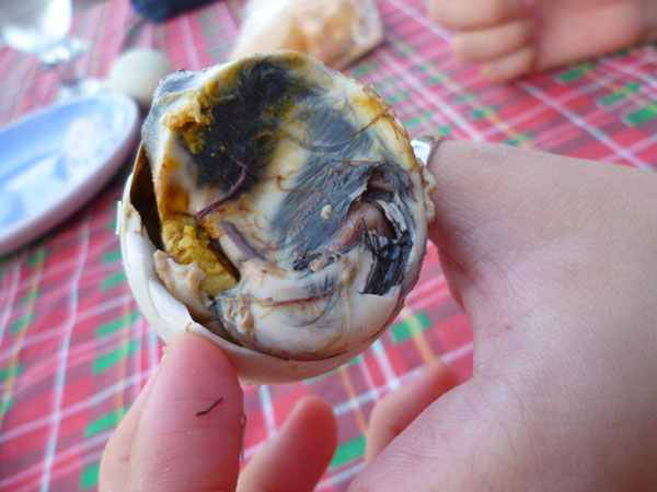 バロットは東南アジアの街頭で人気のある食べ物で、見た目は普通の卵だが、殻をむくと驚かされる。殻の中はほとんど形になっているアヒルの子供で、羽があり孵化を待つばかりの状態だ。茹でて食べるのが一般的で、スパイス、にんにく、酢などを加えれば風味が良くなる。