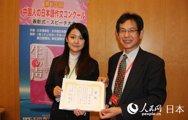 日本僑報社と日中交流研究所が主催する「第10回中国人の日本語作文コンクール」は12日、北京で授賞式を開催し、東華大学(上海)の姚儷瑾さん(20)が、最優秀賞にあたる日本大使賞を受賞した。
