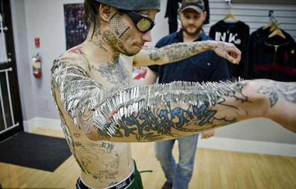 全身タトゥー男 胸にシリコン注入で3Dタトゥー
