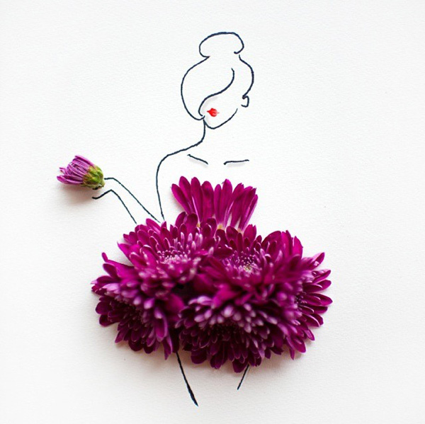 花の挿絵、女性を美しく飾る