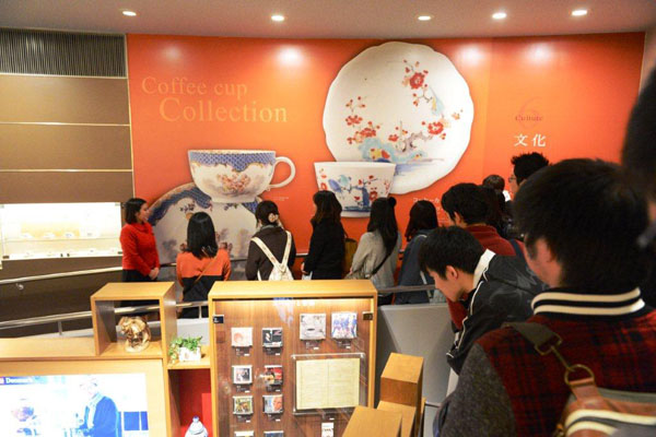 コーヒーカップの展示コーナーを見学(UCCコーヒー博物館にて)