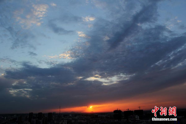 江蘇省連雲港に夕焼け雲の絶景が出現