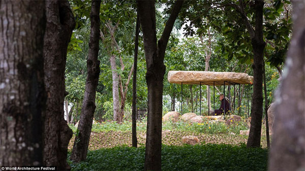 ベトナム・岩と鉄パイプの仏塔