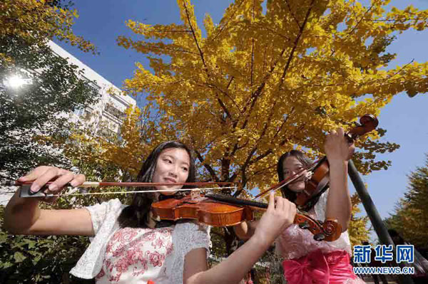 10月18日、瀋陽農業大学(遼寧省瀋陽市)の「イチョウ並木」を市民が見学している。同日、期間半月の「瀋陽農業大学イチョウ文化祭」が開幕した。キャンパスにある長さ1430メートルの「イチョウ並木」は観光客を魅了する特別な風景になっている。新華網が伝えた。