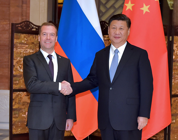 習近平国家主席は15日、浙江省烏鎮でロシアのメドベージェフ首相と会談した。人民日報が伝えた。