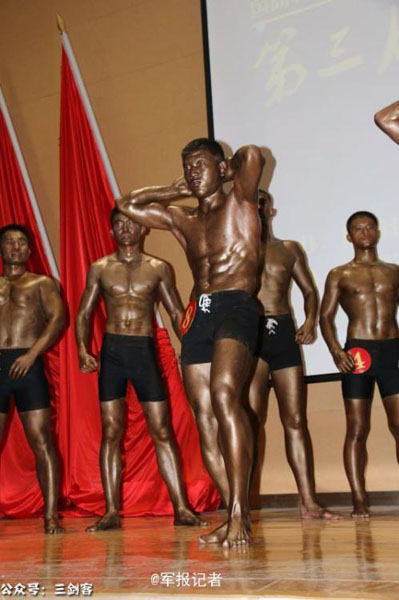 軍校でボディビルコンテスト 学生が筋肉美を披露