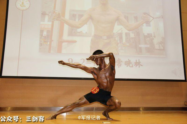 軍校でボディビルコンテスト 学生が筋肉美を披露