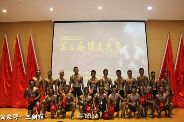 軍校でボディビルコンテスト 学生が筋肉美を披露