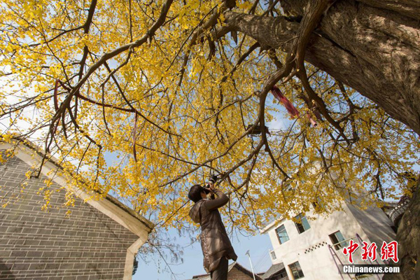 貴州の古い銀杏の木 冬を迎えるも秋色に輝く