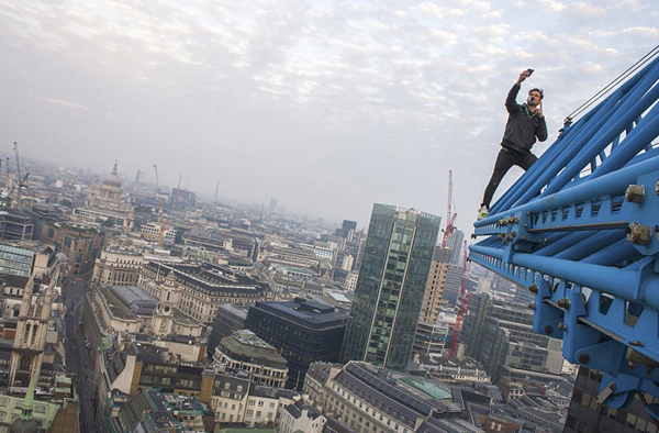 イギリスの2人の男性が、転落防止装置を一切使わずに素手で高さ312フィート(約95メートル)のロイズ・ビルを登り、ロンドンのパノラマ写真を撮影した。