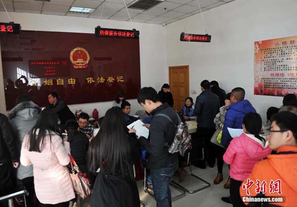 北京 ネット版バレンタインデーの5月20日 入籍者が長蛇の列